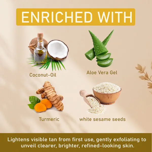 It helps reduce tan and improves skin brightness gradually with regular use.