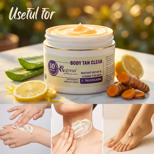 Regoras Body Tan Clear Cream is an Ayurvedic-style tan-removal cream designed to help fade sun tan and dullness from the body. It’s marketed to work quickly and reveal brighter, clearer skin using natural-leaning herbal extracts (as described on the product page). While detailed ingredient lists and verified user reviews are not widely available online yet, the product targets common tan concerns with an easy application routine. Pair it with good sunscreen and regular exfoliation for better results. (Note: effectiveness can vary by skin type and tan severity.)